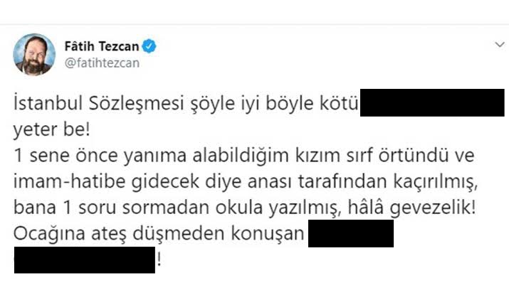 Bu sağlıklı düşünemeyen insanların İstanbul Sözleşmesi hakkındaki fikirleri normalde önemli olmamalıdır ancak Türkiye’de artık Şeriatçılık çok büyük bir kitle ve oy kapasitesine sahip olduğu için maalesef böyle sûni gündemler çok ses getiriyor.